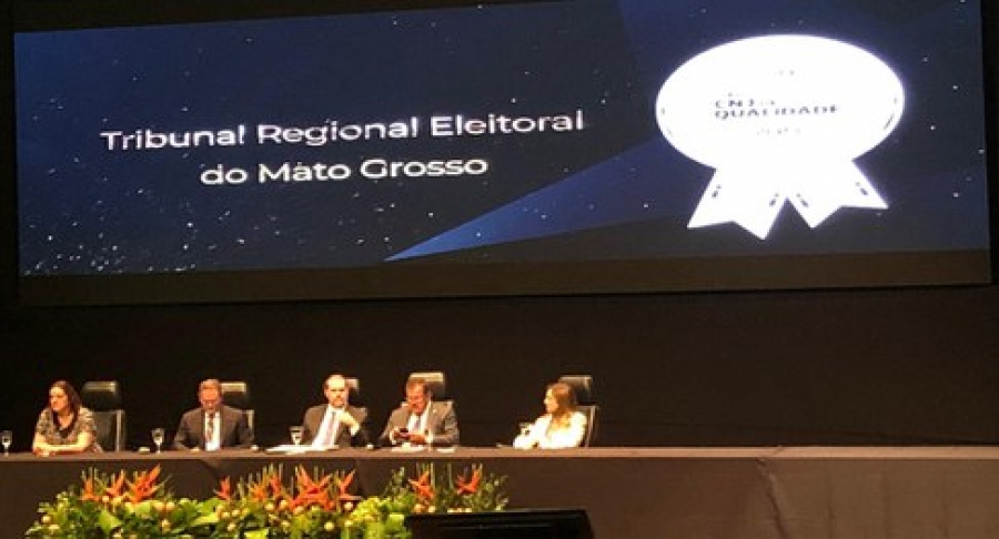 O Tribunal Regional Eleitoral de Mato Grosso (TRE-MT) foi premiado nesta segunda-feira (25.11) no Prêmio CNJ de Qualidade. Atingindo 70% da pontuação máxima disponível, o órgão foi congratulado na categoria Prata. O prêmio levou em consideração três eixos temáticos: Governança, Produtividade, Transparência e Informação.